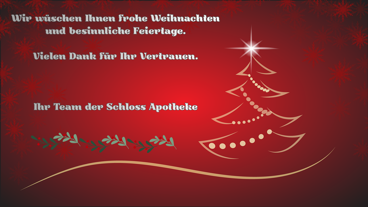 Danke, Feiertage, Gesundheit, Schloss Apotheke, Team, Vertrauen, Weihnachten, Zweibrücken